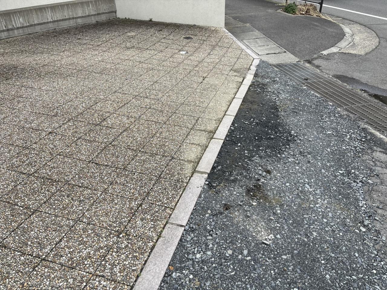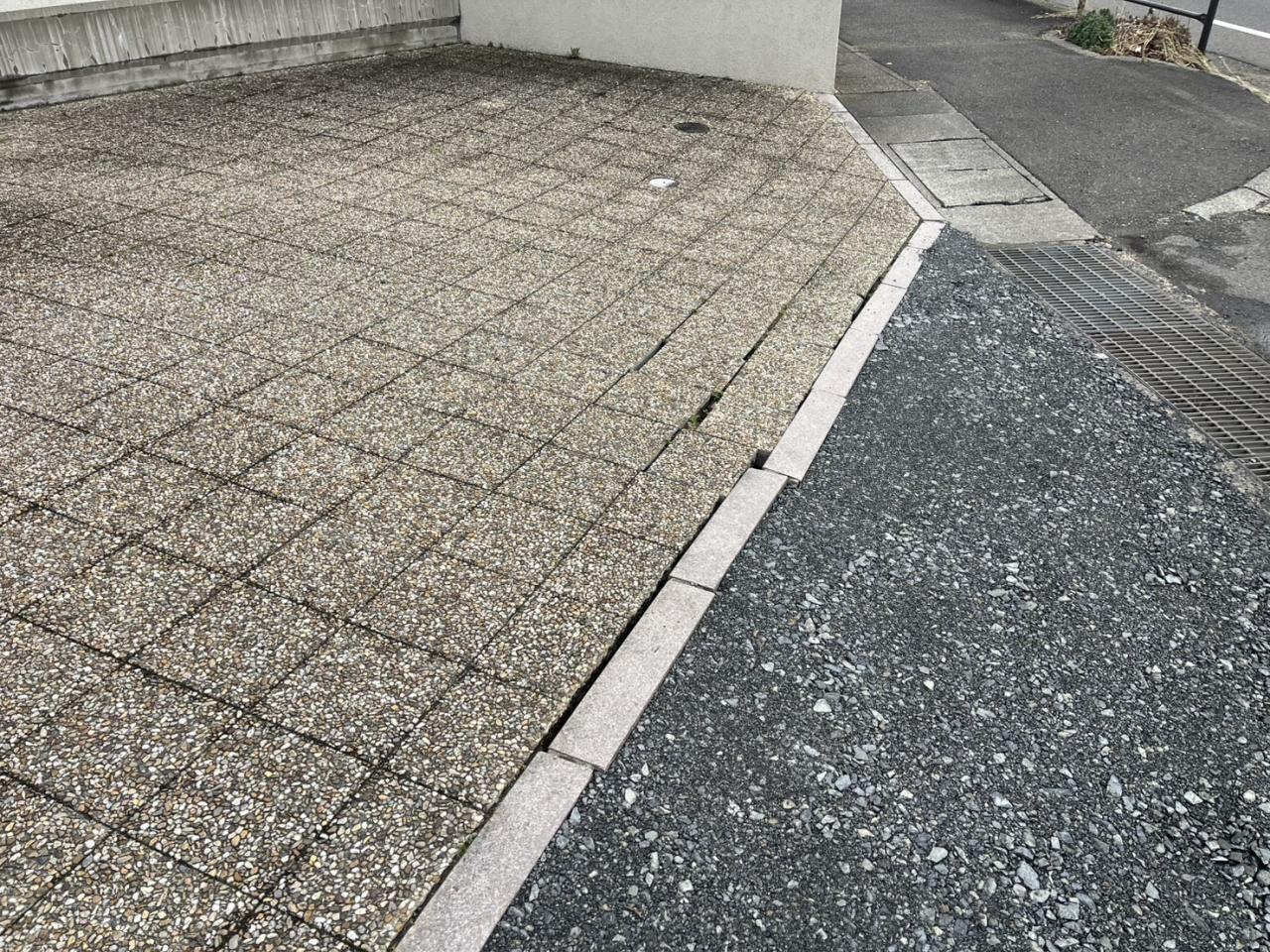 駐車場やアプローチの境界にある「縁石」は、長年の車の出入りや地盤の沈下によって、少しずつズレたり沈んだりすることがあります。今回は、そんな境界部分の修繕工事の様子をご紹介します。
