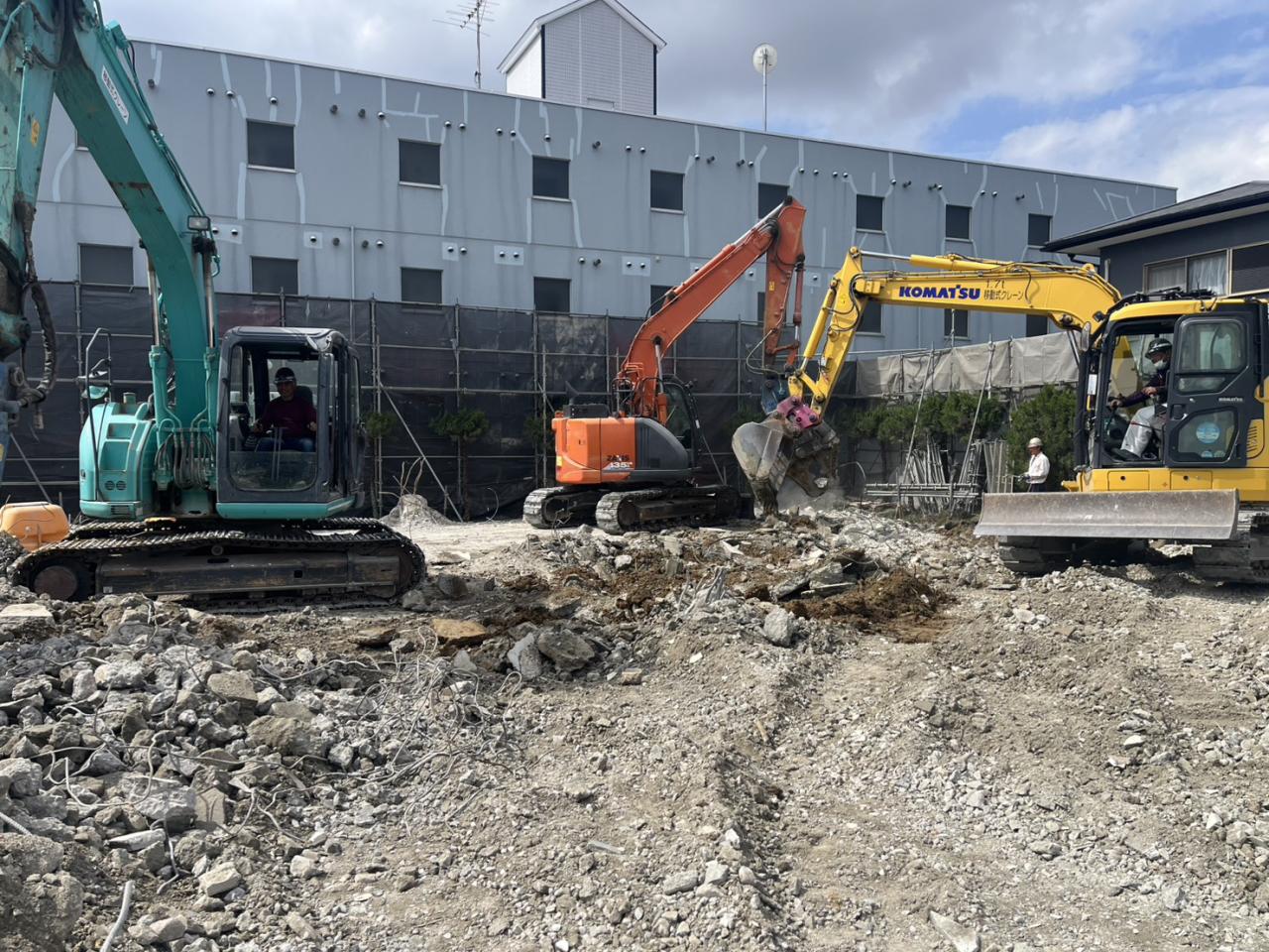 現場スタッフより RC3階建てともなるとガラの量も膨大ですが、一つひとつ丁寧に、かつスピーディーに大型ダンプでの搬出を進めています。近隣の皆様にはご不便をおかけしておりますが、安全第一で作業を継続してまいります! 次回のブログでは、基礎解体や更地化に向けた仕上げの様子をご紹介します。お楽しみに!